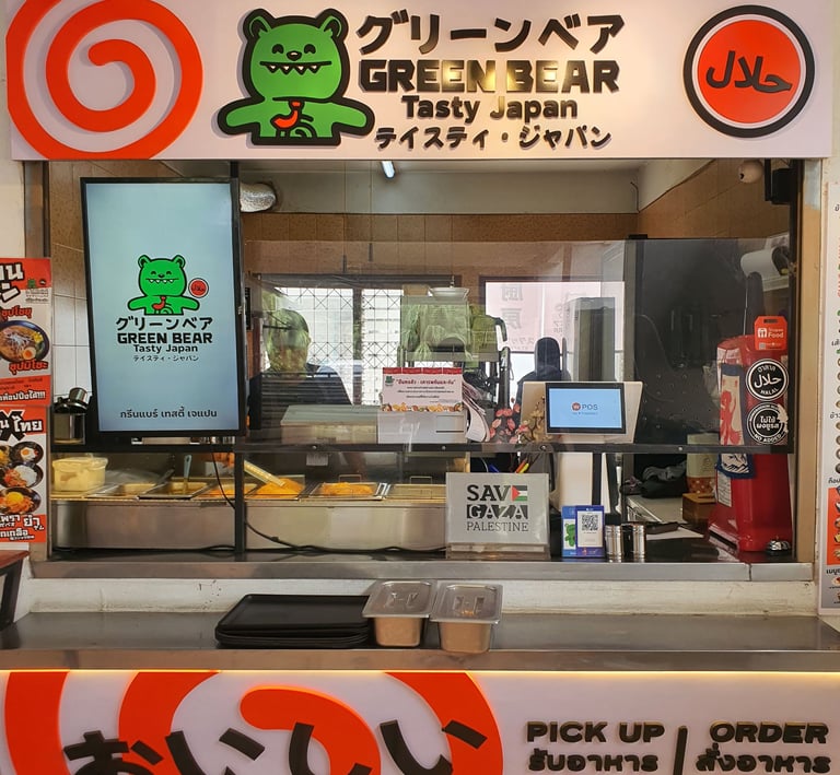 Discover the rich flavors of Japan with our unique ramen and curry rice. Green Bear Tasty Japan shop was originated its first branch in 2020 (BE 2563) in Prince of Songkla University, Pattani Campus (Lanpradoo),Pattani Thailand by Mr. Armusk It was opening as small shop, counter style and selling only a few types of Ramen but the taste of the soup is very intense with soft sticky noodles, and Japanese Curry Rice with a wide range of unique presentations combined with the selection of quality ingredients, resulting in a deliciously aromatic curry flavour. making Thai people like it and become a popular ramen and curry shop successively.